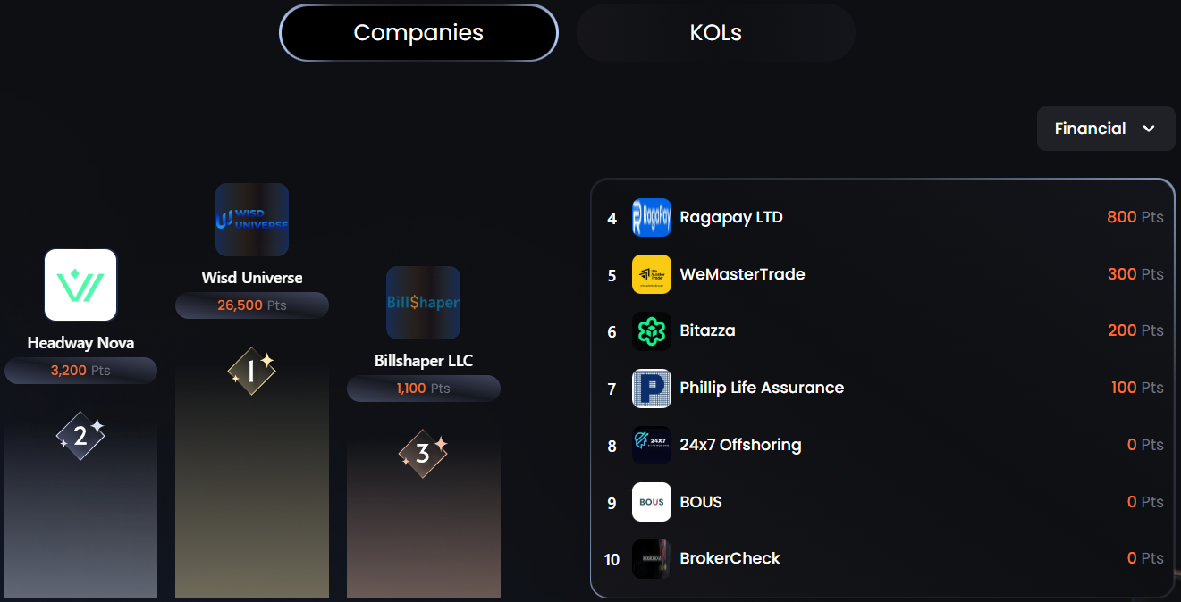 Là một chương trình toàn cầu uy tín do TrustFinance khởi xướng nhằm ghi nhận và tôn vinh các đơn vị dẫn đầu trong lĩnh vực tài chính – bao gồm Forex, Crypto, Stocks, Fintech, Dịch vụ Tài chính và Truyền thông Tài chính. Chương trình năm nay còn mở rộng thêm hạng mục “Community Choice” – nơi cộng đồng được quyền bầu chọn để tôn vinh KOLs và doanh nghiệp theo cách dân chủ hơn.